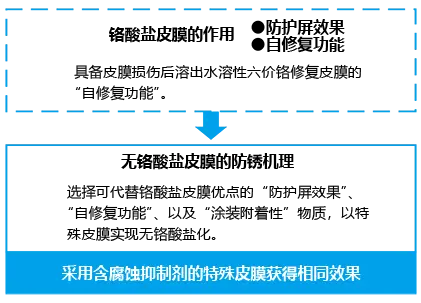 「NS ZINKOTE®」系列采用了各种无铬酸盐处理特殊皮膜,可根据用途赋予各种特性。
