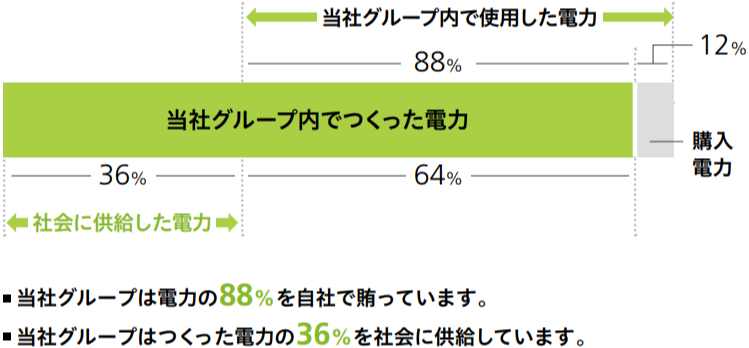 - 当社グループでつくった電力のうち36%を地域社会へ供給