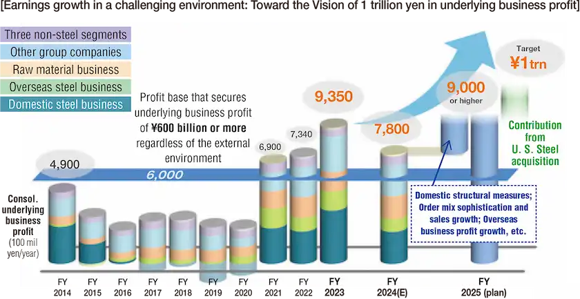 In fiscal 2025, we will work to secure profits of 900 billion yen or more even if the business environment does not improve, by demonstrating the effects of our growth strategy. Once the acquisition of U.S. Steel is completed, we will aim to achieve a revenue structure that enables us to secure a profit of more than or equal to 1 trillion yen.
