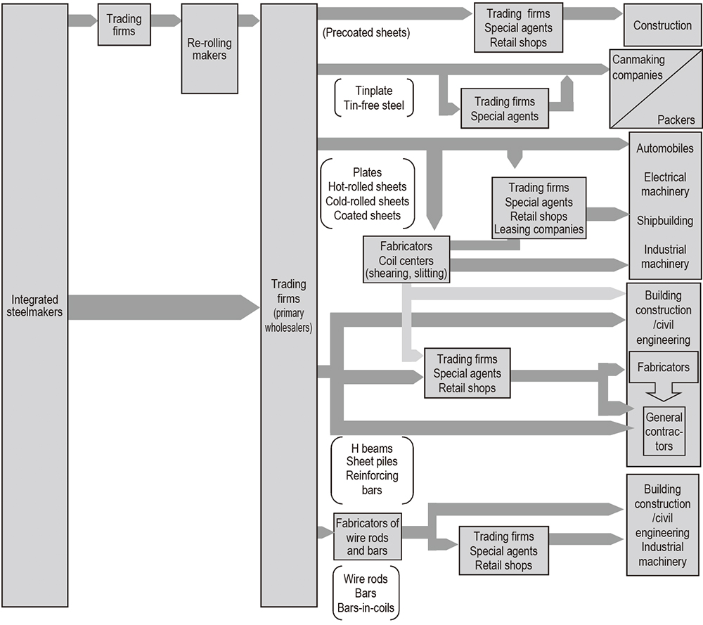 Steelmakers sell steel products to retailers and trading firms without end users being specified, and the retailers and trading firms stockpile the steel products which are purchased at their responsibility and risk and then sell the products with their own sales efforts, taking into account the market and other conditions.