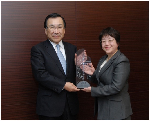 Nippon Steel & Sumitomo Metal Corporation (NSSMC) was recognized as among the world’s top 100 most innovative corporations, by receiving a “Thomson Reuters 2014 Top 100 Global Innovator Award" for the third consecutive year. It was presented with a trophy today.