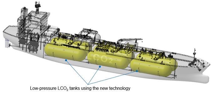 Illustration of a Ship with Low-pressure LCO2 Tanks