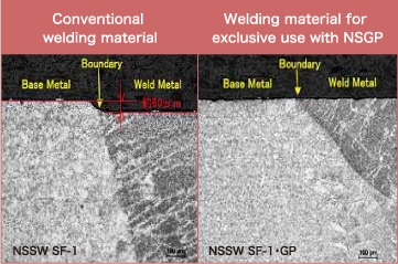 Conventional welding materials show a large degree of corrosion in corrosion tests, and welds made with these materials are sometimes rejected in welding inspections due to corrosion in weld boundaries. In order to secure reliable welding, highly corrosion-resistant welding materials for exclusive use with NSGP have been prepared.