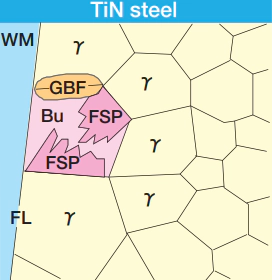 WM: Weld Metal FL:Fusion Line γ:Austenite GBF:Grain Boundary Ferrite FSP:Ferrite Side Plate IGF:Intra-granular Ferrite Bu:Upper Bainite