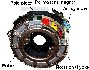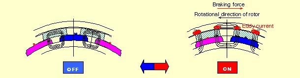 The operating principle of the permanent magnet-type retarder is also simple. A series of magnets inside the stator is arranged so that any given magnetic pole faces the opposite magnetic pole of the adjacent magnet. When the retarder is switched OFF, no force is exerted on the rotor because the magnets are positioned straddling the pole pieces, and the magnetic circuit moves only through the pole pieces.