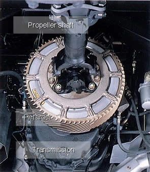 The operation of the permanent magnet-type retarder is also simple. It is switched ON and OFF by compressed air supplied by the vehicle itself. This assures high reliability and superb response.