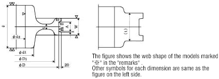 | Hub inside diameter (d2) | (Including 3mm machining allowance in diameter) |