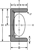 r1 | r2 | a | Cx | Cy | lx | ly | ix | iy | Zx | Zy |