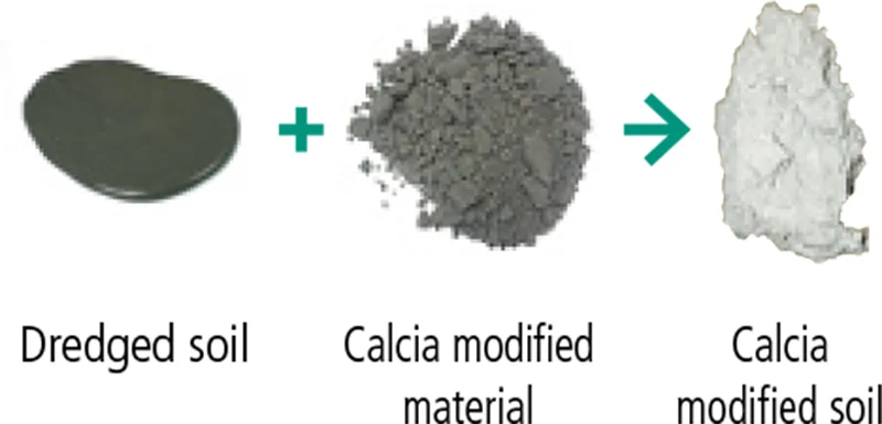 Geo-TizerTM made of steel slag can be mixed with soft soil (mud, such as surplus excavated soil from construction sites or farmland soil) to reform the soil to make it usable. Unlike conventional soil-improvement materials (i.e., cement and lime), this soil produces less dust, significantly reduces CO2 emissions, and is less expensive, enabling reduction of construction cost. The remediated soil is outstanding in compacting and can also be easily excavated, as it does not excessively solidify.