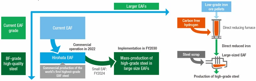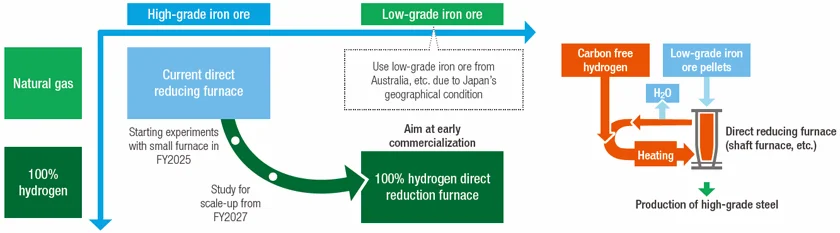 we started building a small test furnace in the Hasaki R&D Center to start experiments in fiscal 2025. In order to realize production efficiency that can replace the blast furnace process by using the integrated process of hydrogen direct reduction, electric melting furnace, and converter for low-grade iron ore, we are also starting to develop a technology for high efficiency melting by electric melting furnace utilizing direct reduced iron.