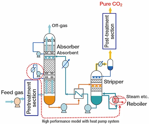 The ESCAP™ is characterized by high energy efficiency with a more than 40% reduction in heat consumption compared to general-purpose technology. In addition, its proprietary impurity removal facility enables recovery of more than 99.9% of high-purity CO2 from raw material gas with high impurities.