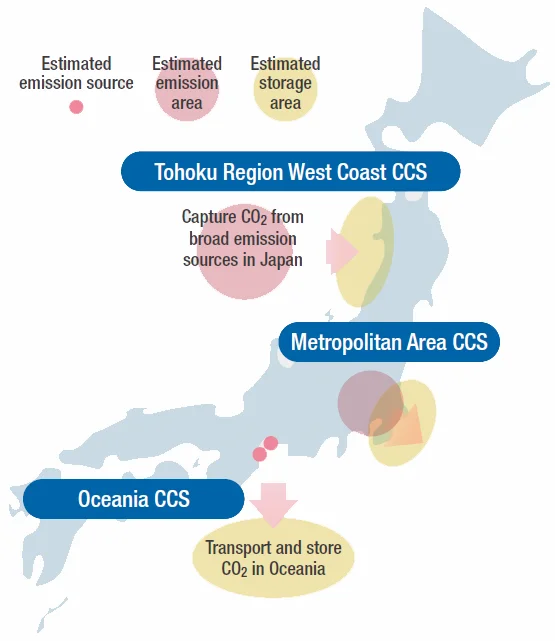 As part of the Survey on the Implementation of Japan Advanced CCS Projects that the Japan Organization for Metals and Energy Security (JOGMEC) adopted for its publicly solicited projects in fiscal 2023, Nippon Steel participates in three joint projects: the Tohoku Region West Coast CCS Project, the Metropolitan Area CCS Project, and the Oceania CCS Project.