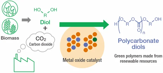 In April 2023, Nippon Steel, Osaka Metropolitan University, Kyoto University, Tohoku University, Tokyo University, and UBE Corporation started research and development on the “development of one-step synthesis process for polycarbonate diol from CO2.” Polycarbonate diol is a representative material for producing high value-added carbon compounds that do not require hydrogen. It is also a raw material for high-performance polyurethanes, widely used worldwide and whose demand is expected to grow further. However, the high environmental impact of its synthesis process has been a major issue. In contrast, this research and development aims to develop an innovative green process that effectively utilizes CO2 instead of highly toxic gases such as CO and achieves high yields in one-step synthesis.