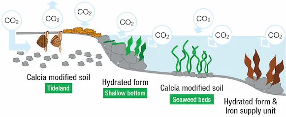 Develop and commercialize technology to create seaweed beds (blue carbon ecosystem) by using fertilizers made of steel slag, a by-product of steelmaking, in coastal areas.