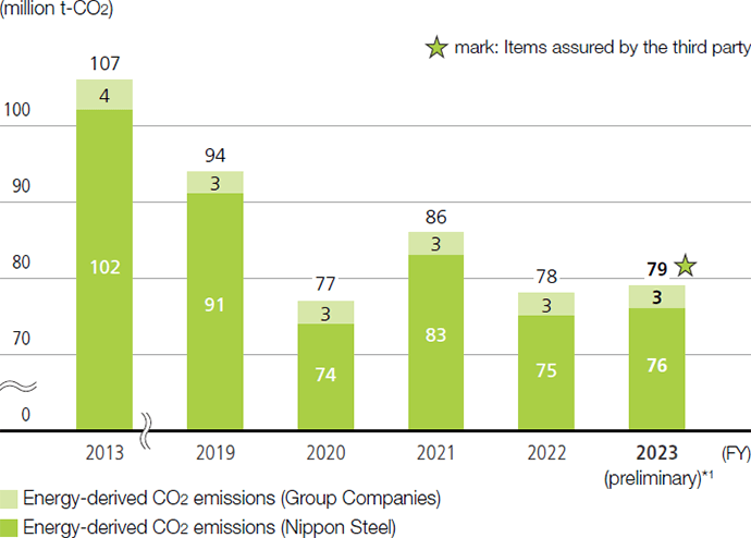 - *3The amounts of energy consumption required for production of coke purchased by Nippon Steel and CO2 emissions are included in the aggregate.