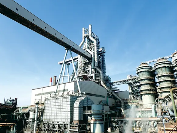 In the blast furnace, a reduction reaction to remove oxygen from iron ore, using carbon as a reducing agent, is conducted. Nippon Steel has developed and adopted various technologies, including those to make larger blast furnaces, improve energy efficiency through stable operation, and power generation by use of blast furnace top pressure. These efforts have resulted in realizing the world’s top-class energy conservation and CO2 reduction.