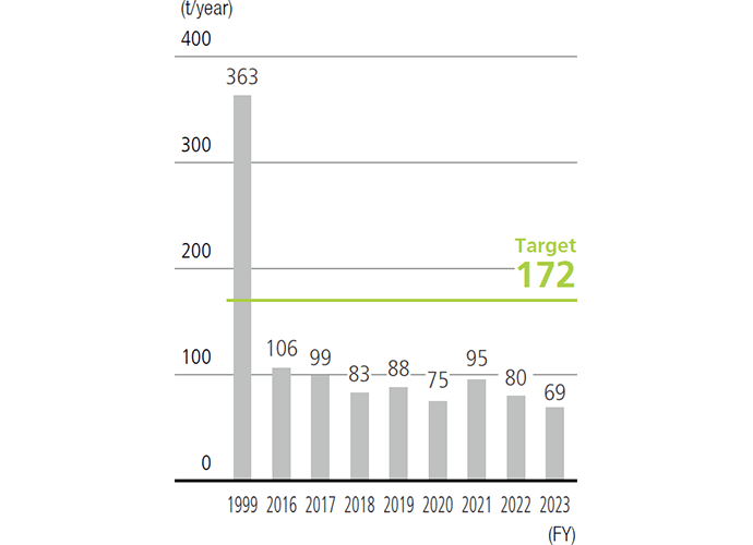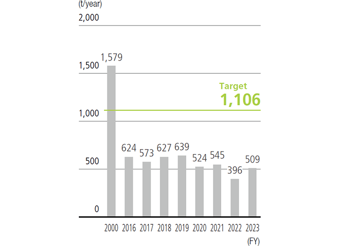 We have similarly been working on reducing volatile organic compounds (VOCs). In fiscal 2009, the 30% reduction target relative to fiscal 2000 was achieved. Since then, low discharge levels have been maintained.
