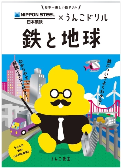 日本製鉄株式会社(以下、日本製鉄)は、認知度向上の一環として、累計発行部数1000万部を突破し小学生に圧倒的な認知を誇る「うんこドリル」(出版:文響社)とコラボし、“日本一楽しい鉄ドリル『鉄と地球』”を制作・発行しました。次世代を担う子供たちに「鉄」の魅力をもっと知ってもらいたい、そして身近に感じてもらいたいという思いから、『鉄と地球』では「うんこ」と「鉄」の共通点を切り口に、子どもたちが楽しみながら鉄の歴史やリサイクル、地球環境について興味を持ち、学ぶきっかけを作るべく、全5問のクイズ形式を含めた冊子にしました。