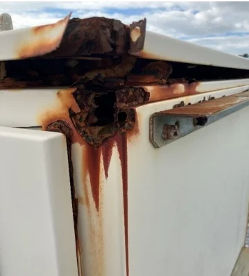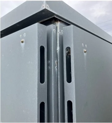 1点目は『屋外で使用する』高耐食めっき製品(SuperDyma®,ZAM®,ZEXEED®)です。今回、特別に沖縄特有の塩分を含む風と高温多湿の厳しい環境に耐えた『塗装レス』の配電盤(下記写真)を展示します。日本製鉄の高耐食めっき製品の耐食性の凄さをご覧ください。
