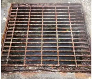 大分県別府市の温泉郷(別府八湯)では、単純温泉、塩化物泉、炭酸水素塩泉、硫酸塩泉、含鉄泉、硫黄泉、酸性泉の7種類の泉質が確認されています。それぞれの泉質により、効能や湯ざわりが変わってきますが、金属に与える影響も異なります。単純泉・ナトリウム泉などpHが4.0程度の温泉は金属に与える影響は小さいのですが、硫黄泉などpH2.0といった酸性温泉になると、温泉にはつきものの、絶えず発生する水蒸気や、成分由来の塩化物等の浮遊粒子に加えて、強腐食性の硫化水素のような酸性ガスが温泉水とともに湧出する場合があり、金属材料には苛酷な環境です。大分県別府温泉においても、そこかしこから、特に高温の蒸気からなる湯けむりが立ち上る箇所があり、そこに設置された鋼製グレーチングは、防錆のための亜鉛めっきが施されていても、鋼材の腐食が著しく進む状態に置かれています。