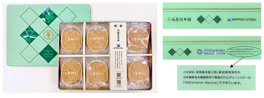 日本製鉄のグリーンスチール「NSCarbolex Neutral」が愛知県東海市ふるさと納税返礼品である坂角総本舖とのコラボ缶に採用