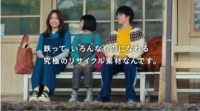 電車の到着を待つ3 きょうだいが、待ち時間にしりとりを始めます。ただ、始まったのは普通のしりとりではなく、「鉄縛り」のしりとり。難しいしりとりかと思いきや、鉄をこよなく愛する3 きょうだいだからこそ、次から次へと鉄製品の名前が飛び出します。最後は、しりとりに夢中になりすぎたあまり電車が出発してしまい、3 きょうだいが慌てて電車を追いかけるというユーモラスな展開に。しりとりの中では、クギやギアといった誰もが知る鉄製品から、シャフト炉のような聞き馴染みのないアイテムまで、幅広い鉄製品が登場します。鉄製品が私たちの日常生活の中にあふれ、暮らしを支える身近な存在であると同時に、「さまざまなものに生まれ変わる究極のリサイクル素材」であることに気づかされる内容のCM となっています。