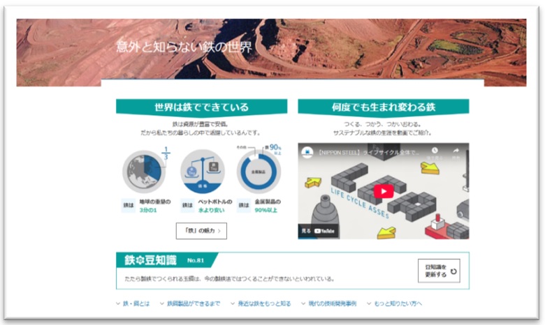 「意外と知らない鉄の世界」:https://www.nipponsteel.com/newsroom/about-steel/