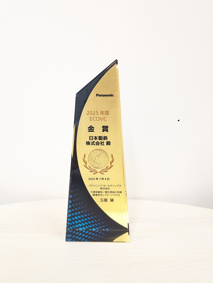 日本製鉄株式会社(以下、日本製鉄)は、2025年9月5日に行われたパナソニックホールディングス株式会社(以下、パナソニック)内で実施しているECOVC活動(パナソニックオペレーショナルエクセレンス㈱主催)の授賞式にて金賞を受賞しました。