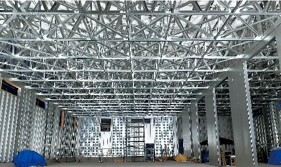 NSスーパーフレーム工法は、主要構造部材の板厚が1.0~2.2ミリと非常に薄いことから躯体がとても軽い。そのため鋼管杭や地盤改良を伴わない浮き基礎工法を採用でき、基礎工事の現場作業を大幅に省力化した。浮き基礎工法は軟弱地盤への対応としても最適だった。さらに工場生産された壁パネルと屋根トラスを施工現場に持ち込み、主にドリルねじで接合組立することによって、高品質と現場での短工期を実現したのだ。