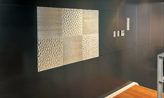 Feluce®壁+高意匠ブリキのオブジェが上質な空間をつくり出している