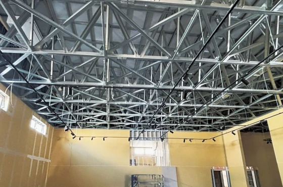 NSスーパーフレーム工法は、当社の高耐食めっき鋼板スーパーダイマ®を枠材とし、構造用面材をドリルねじで接合し、さらに板状の断熱材を組み合わせている。鋼の躯体を断熱材ですっぽりと覆う外張り断熱通気工法を標準採用しており、少ないエアコン稼働量でも、冬暖かく夏涼しい快適な空間を実現できる。コロンビアパビリオンでは屋根トラス上部の断熱材の厚さを90ミリとし、表層に輻射熱を反射するアルミ箔を貼ることで、万全の猛暑対策を講じた。