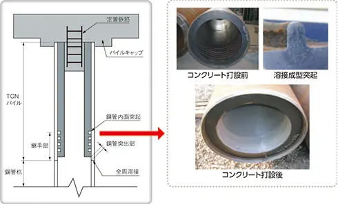 TCN® パイル (鋼管杭との接合用継手を有する外殻鋼管付きコンクリート杭)