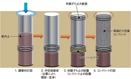 コンクリートを充填できれば、鋼管杭の施工方法による制約はありません。