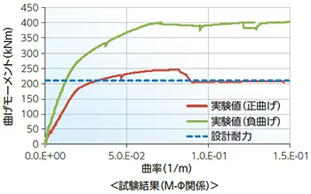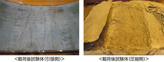 通常の製品検査で実施される正曲げ試験に加えて、負曲げ試験も実施し、合成セグメントとして設計可能な耐力、変形性能を保有することを確認しております。さらに、終局状態においても設計モデルの想定通りの曲げ破壊(コンクリート圧壊)モードを示すことを確認し、設計モデルの妥当性も合わせて検証しております。