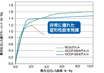鋼−コンクリートの合成構造化により、あらゆる軸力レベルで高い曲げ耐力を発揮します。