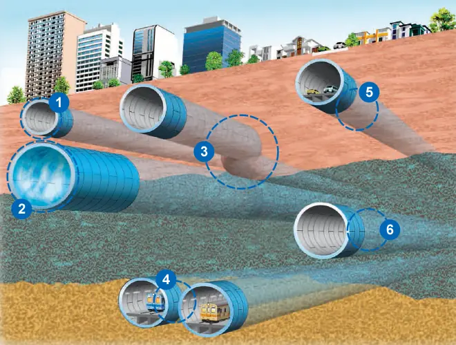 シールドトンネルの用途、敷設場所の多様化に伴い、シールドトンネルの設計条件も多様化しています。HCCP®セグメントは、その高耐力(薄壁構造)、高止水性能、高変形性能などを活かし、これらの設計条件に合理的に対応することができます。