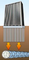 地表面に大規模構造物が存在する、あるいは将来的に大規模構造物の建設が予定されている直下をトンネルが通過する場合、建物荷重を考慮してトンネル覆工を設計する必要があります。HCCP®セグメントは高耐力構造ですので、このような大規模上載荷重に対しても薄壁構造で対応可能です。