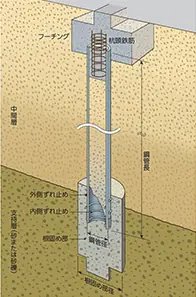 杭先端に築造した拡大根固め部により、長期最大先端許容支持力17900kNを実現しました(拡大根固め部径2400mm、N=60の場合)。