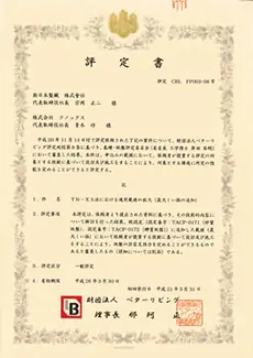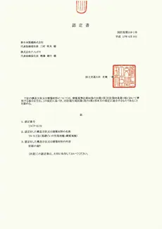 建築分野において2005年6月付で国土交通大臣認定(鋼管径600~1200mm)を取得し、その後更なる開発により(一財)ベターリビングにおいて、2009年3月付で「最大くい径の追加(鋼管径1200mm超~1400mm)」、2010年8月付で「施工法の追加(鋼管径1200超~1400mm、最大施工深さ70m)」、 2015年2月付で「先端ずれ止め仕様の追加」の一般評定を取得しました。