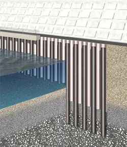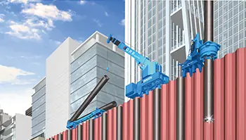 コンビジャイロ工法®は、剛性の高い鋼管杭と止水性に優れたハット形鋼矢板900を組み合わせた、合理的で経済性に優れた壁体構造を提供する工法です。