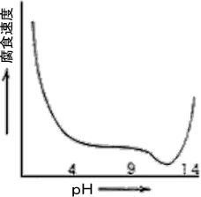 pHが鉄鋼材料に与える腐食の影響は、概ね次図のとおりです。