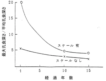 鋼面のスケールは一般的には腐食を抑制しますが、スケールの部分的な脱落等は、局部腐食を発生させやすくなります。