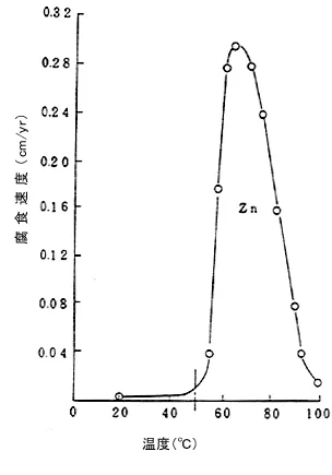 - 亜鉛は約60℃以上になると急激に腐食し、水質によっても亜鉛と鉄の極性の逆転が起こります。従って、温水配管に用いるのは好ましくありません。