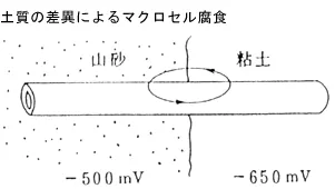 1.外面腐食 - 土質の差異による通気差電池腐食