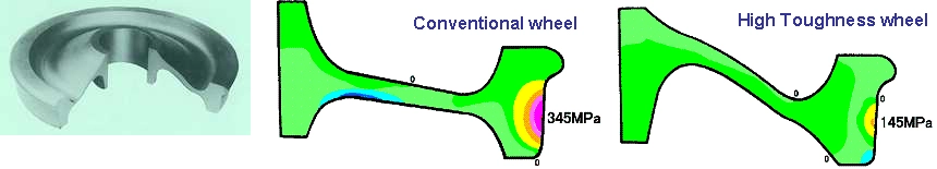 High Toughness Wheel (High fracture resistance wheel) which can reduce harmful residual stress caused by thermal input by tread braking has been developed by Nippon Steel first in the world.