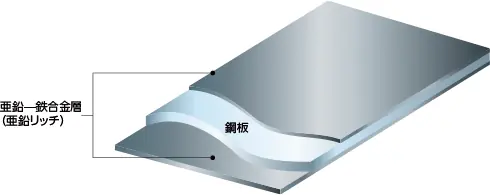めっき層が亜鉛ー鉄合金のため通常の亜鉛めっき鋼板に比べ、溶接作業性が優れています。