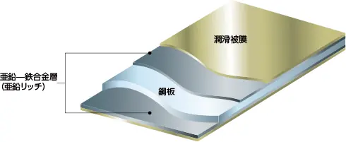 潤滑皮膜処理を施すことにより、良好なプレス成形性を持たせています。