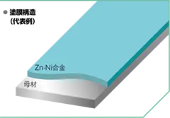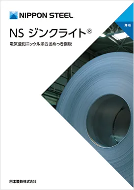 「NSジンクライト」は電気めっき法により鋼板表面に均一なZn-Ni系合金被覆を施した高耐食性表面処理鋼板です。