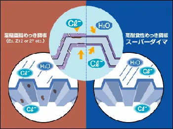 雨水や海水ミストにより、デッキプレートの表裏面にサビが発生。