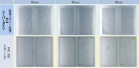 スーパーダイマ®とステンレスの平面部の耐食性(JASO結果)